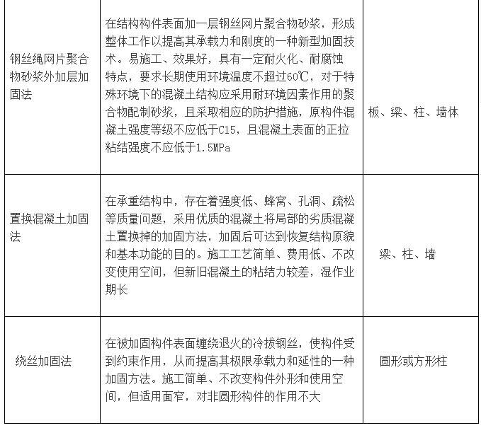 根據(jù)加固工程的特點(diǎn),加固設(shè)計(jì)除要求做到技術(shù)安全可靠、經(jīng)濟(jì)合理、施工簡(jiǎn)便、確保質(zhì)量、環(huán)保節(jié)能并滿足使用要求。以上是小編為大家總結(jié)的混凝土結(jié)構(gòu)常用加固方法概況: