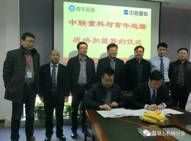 近日,中聯重科股份有限公司與南京言午運輸有限公司在江蘇南京舉行戰(zhàn)略加盟簽約儀式: