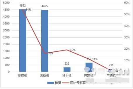 25家納入統(tǒng)計的挖掘機企業(yè)累計銷售挖掘機4500多臺,同比大漲54%,在連續(xù)四個月同比高達70%的高速增長之后,上升勢頭依然強勁。