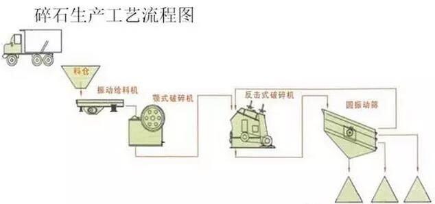原料輸送---機(jī)制砂及篩分---配料---混合及包裝機(jī)制砂生產(chǎn)工藝流程