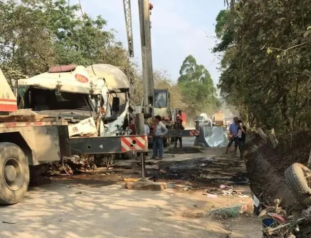 一輛混凝土車撞上一名騎摩托車的男子,摩托車被壓扁粉碎,駕駛員頭部被壓,當(dāng)場(chǎng)不幸身亡?;炷淋嚿⒓軋?bào)廢,司機(jī)受輕傷。