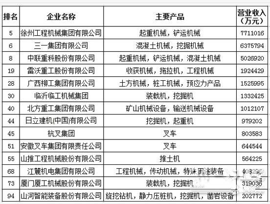 2016機械工業(yè)百強工程機械企業(yè)入圍情況