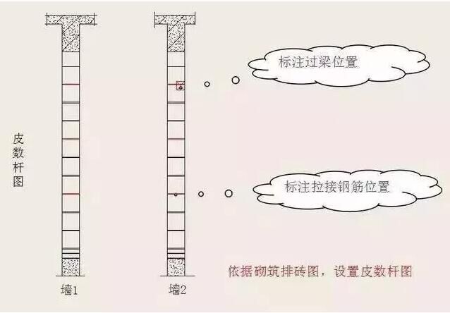 ( 2 )施工時(shí)在墻體轉(zhuǎn)角處立好皮數(shù)桿或利用混凝土墻柱做皮數(shù)桿,桿上標(biāo)明塊層、灰縫、窗臺板、門窗洞口、過梁、圈梁、預(yù)制件等的高度及位置,并應(yīng)隨時(shí)檢查其準(zhǔn)確性。