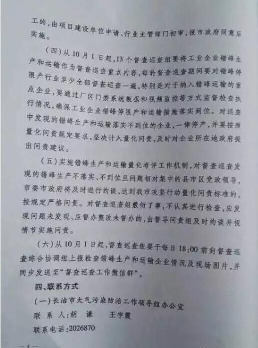 山西省長(zhǎng)治市也發(fā)布《關(guān)于進(jìn)一步做好2017-2018秋冬季工業(yè)企業(yè)錯(cuò)峰生產(chǎn)和運(yùn)輸?shù)耐ㄖ?。要求?017年10月1日00時(shí)起至2018年3月31日24時(shí),水泥(含粉磨站)等建材行業(yè)企業(yè)全部停產(chǎn)。