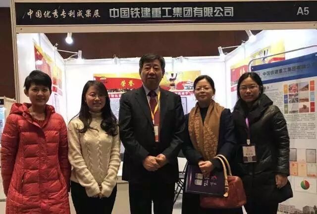 ▲中國(guó)鐵建董事長(zhǎng)、黨委書記孟鳳朝在中國(guó)優(yōu)秀專利成果展上與鐵建重工展區(qū)的工作人員合影留念
