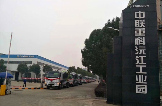 混凝土攪拌車依次排列準(zhǔn)備發(fā)往全國各地