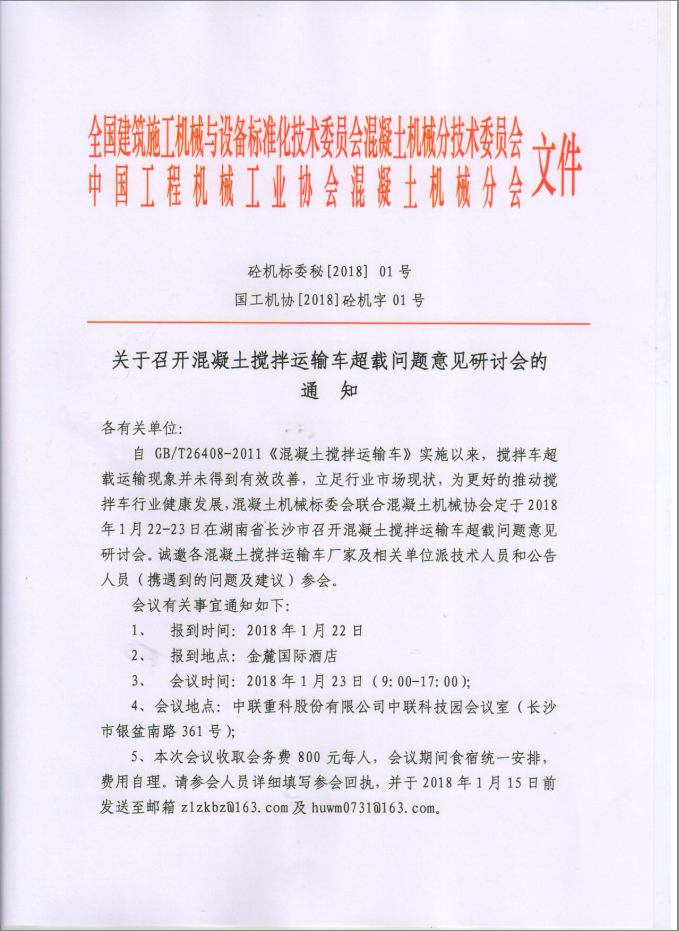 關于召開混凝土攪拌運輸車超載問題意見研討會的通知