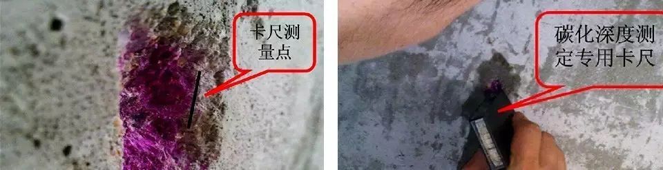 碳化會增大混凝土表面硬度,所以回彈判定其強度時需要檢測碳化深度(一般混凝土碳化深度可用碳化深度測量儀,碳化深度尺等進行測定?;貜椫禍y量完畢后,應選擇不少于構件的30%測區(qū)數(shù)在有代表性的位置上測量碳化深度值。)進行修正。