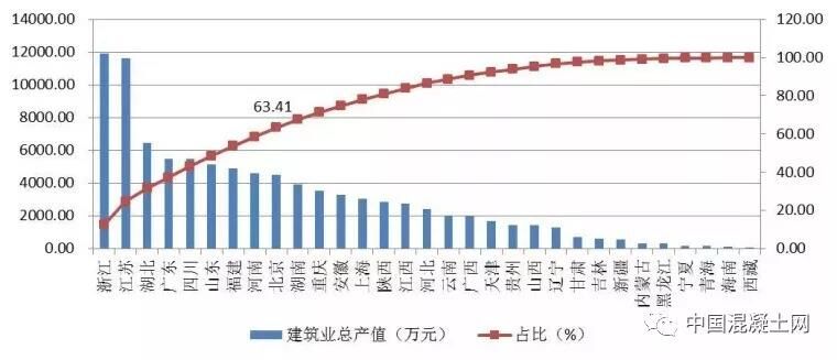 2018年上半年,浙江、江蘇兩省依然領(lǐng)跑全國各地區(qū)建筑業(yè),建筑業(yè)總產(chǎn)值繼續(xù)雙雙超過1萬億元,分別達(dá)到11893.95億元、11615.45億元,兩省共占全國建筑業(yè)總產(chǎn)值的24.8%。