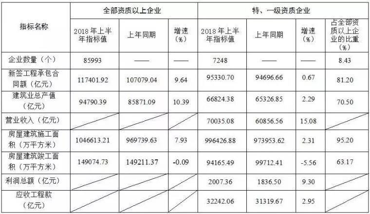 住房和城鄉(xiāng)建設(shè)部匯總的7248個(gè)特、一級資質(zhì)建筑業(yè)企業(yè)2018年上半年主要指標(biāo)數(shù)據(jù)如下(表1)。
