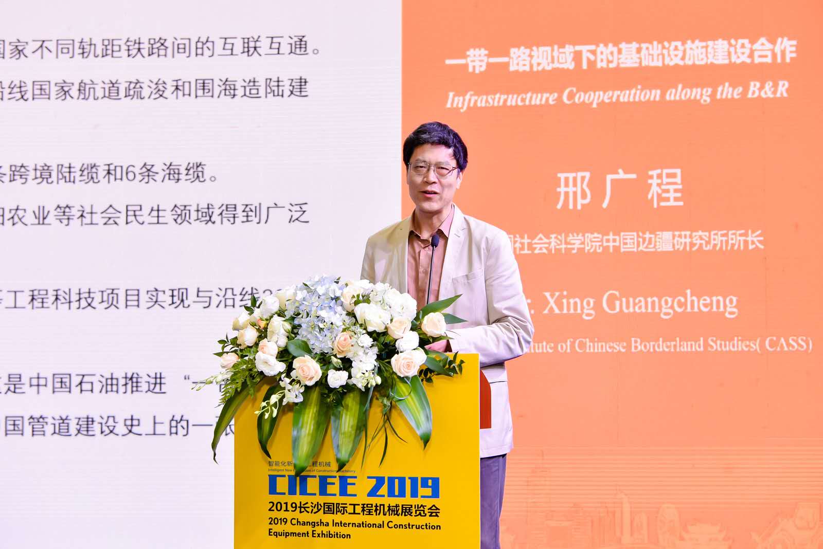 中國葛洲壩集團工程有限公司副總李劍鋒分享了葛洲壩對于“一帶一路”中國工程機械“走出去”的想法和看法。闡述了“一帶一路”進入高質(zhì)量發(fā)展階段”走出去"企業(yè)所面臨的挑戰(zhàn)機遇。