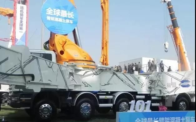 中聯(lián)重科20周年慶典展出的全球最長(zhǎng)101米泵車(chē)