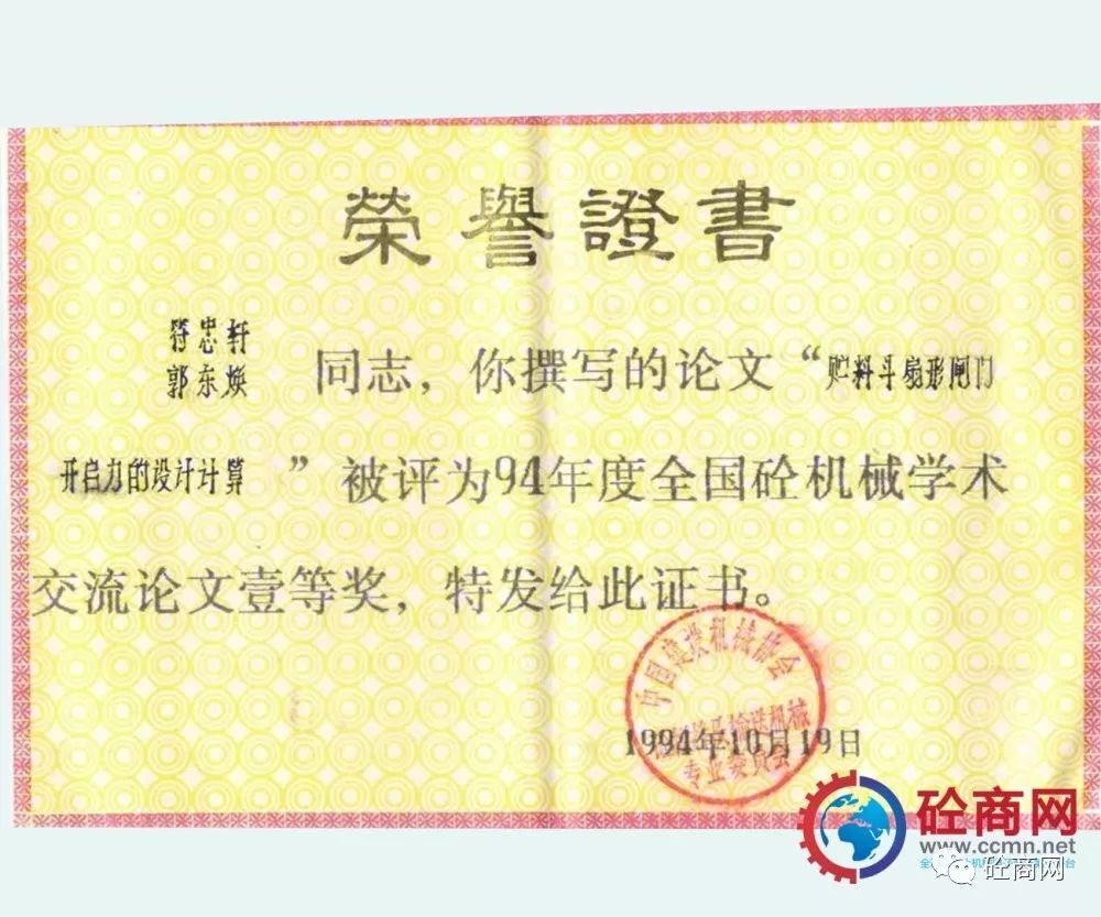 行業(yè)引領(lǐng)發(fā)展,研發(fā)人員積極性高。本人作為科研人員先后發(fā)表了《儲(chǔ)料斗扇形閘門(mén)開(kāi)啟力的設(shè)計(jì)計(jì)算》被評(píng)為1994年度全國(guó)砼機(jī)械學(xué)術(shù)交流論文一等獎(jiǎng),本文引入“水力學(xué)半徑”的概念,較為詳盡的介紹了目前在混凝土攪拌站、配料站上大量采用的扇形閘門(mén)料斗的開(kāi)啟力計(jì)算,為配料機(jī)構(gòu)的設(shè)計(jì)選型提供了理論依據(jù);發(fā)表的《談裝載機(jī)上料形式混凝土配料(攪拌站)的發(fā)展》被評(píng)為1992年度全國(guó)砼機(jī)械學(xué)術(shù)交流會(huì)優(yōu)秀論文獎(jiǎng),本文針對(duì)當(dāng)時(shí)混凝土攪拌站上料型式較多:懸臂拉鏟、鏈斗機(jī)及裝載機(jī)上料型式等,分析了國(guó)內(nèi)發(fā)展的實(shí)際,提出了裝載機(jī)上料形式為未來(lái)發(fā)展方向;1997年發(fā)表在《建設(shè)機(jī)械技術(shù)與管理》雜志第五期的《混凝土泵攪拌葉片的合理布置》,以全球量大面廣的S閥為例,分析了幾種葉片布局形式對(duì)混凝土泵吸料性的影響,設(shè)計(jì)了一種正泵送料、反泵扒料合理的攪拌葉片布局形式。