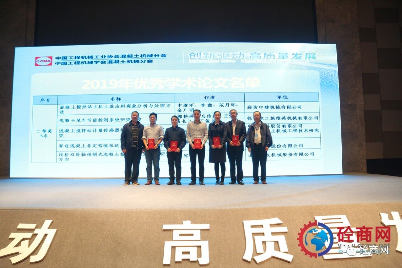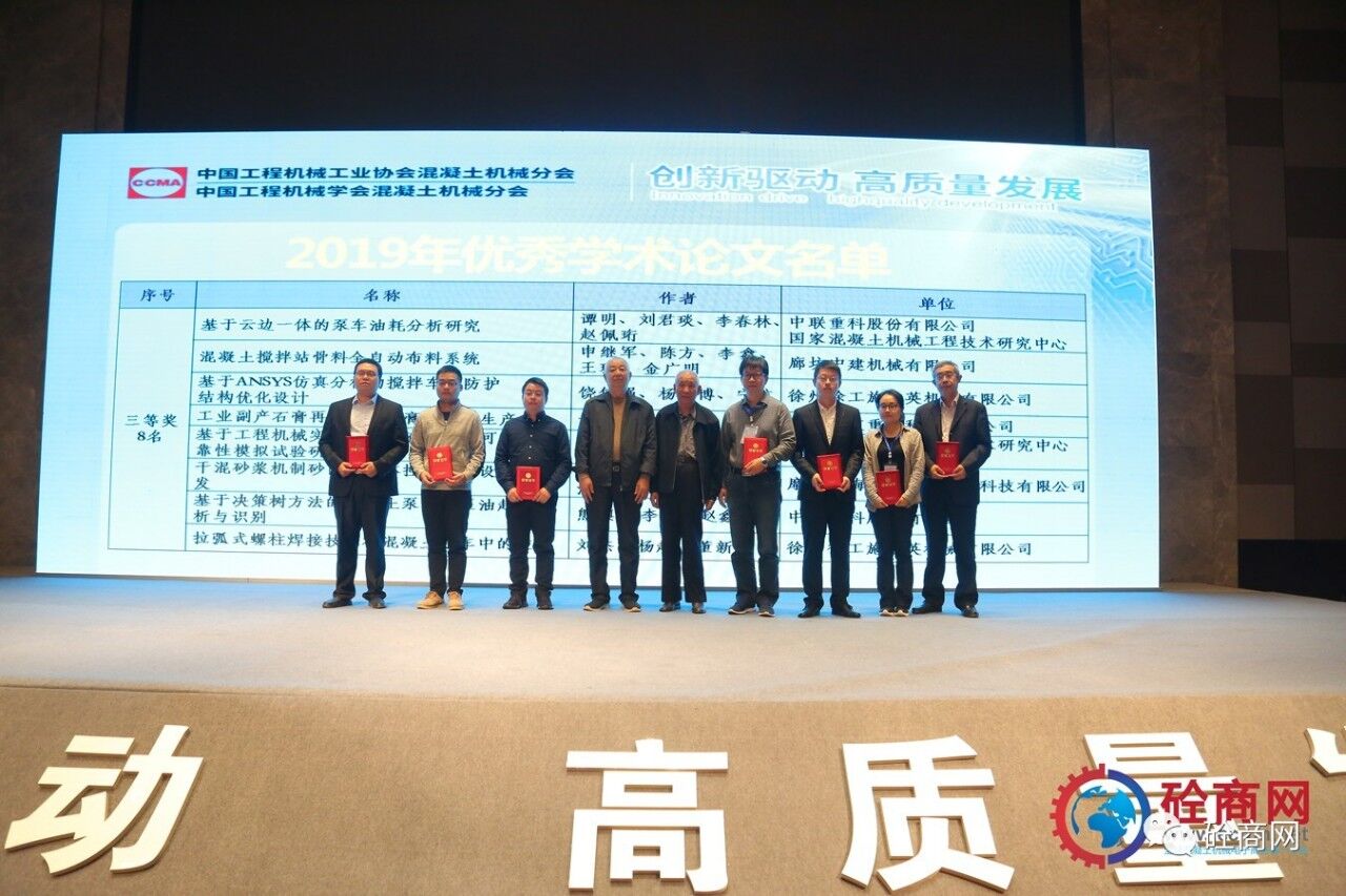 2019年的論文征集評(píng)選結(jié)果已經(jīng)揭曉,共收到參評(píng)論文26篇,其中會(huì)長(zhǎng)單位中聯(lián)重科、國(guó)家混凝土機(jī)械技術(shù)研究中心《基于離散單元法立軸沖擊破碎機(jī)成砂率研究》等三篇論文獲得一等獎(jiǎng),副會(huì)長(zhǎng)單位廊坊中建機(jī)械有限公司《混凝土攪拌站主機(jī)上蓋沾料現(xiàn)象分析與處理方法》共5篇論文獲得二等獎(jiǎng)、中聯(lián)重科、國(guó)家混凝土機(jī)械技術(shù)研究中心《基于云邊一體的泵車(chē)油耗分析研究》等8篇論文獲得三等獎(jiǎng),其余10篇均獲優(yōu)秀論文獎(jiǎng)。在此我提議:讓我們以熱烈掌聲向中聯(lián)重科、徐工施維英、廊坊中建機(jī)械有限公司三家優(yōu)秀組織單位和論文獲獎(jiǎng)人員表示最熱烈的祝賀和最誠(chéng)摯的感謝——感謝大家為中國(guó)混凝土機(jī)械行業(yè)的技術(shù)進(jìn)步所做出的貢獻(xiàn)。
