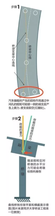 該教授對南都記者說,對于獨柱墩的優(yōu)化設(shè)計是普遍認識不足的問題,大部分工程師還認識不到橋墩最后會被從一側(cè)推倒。