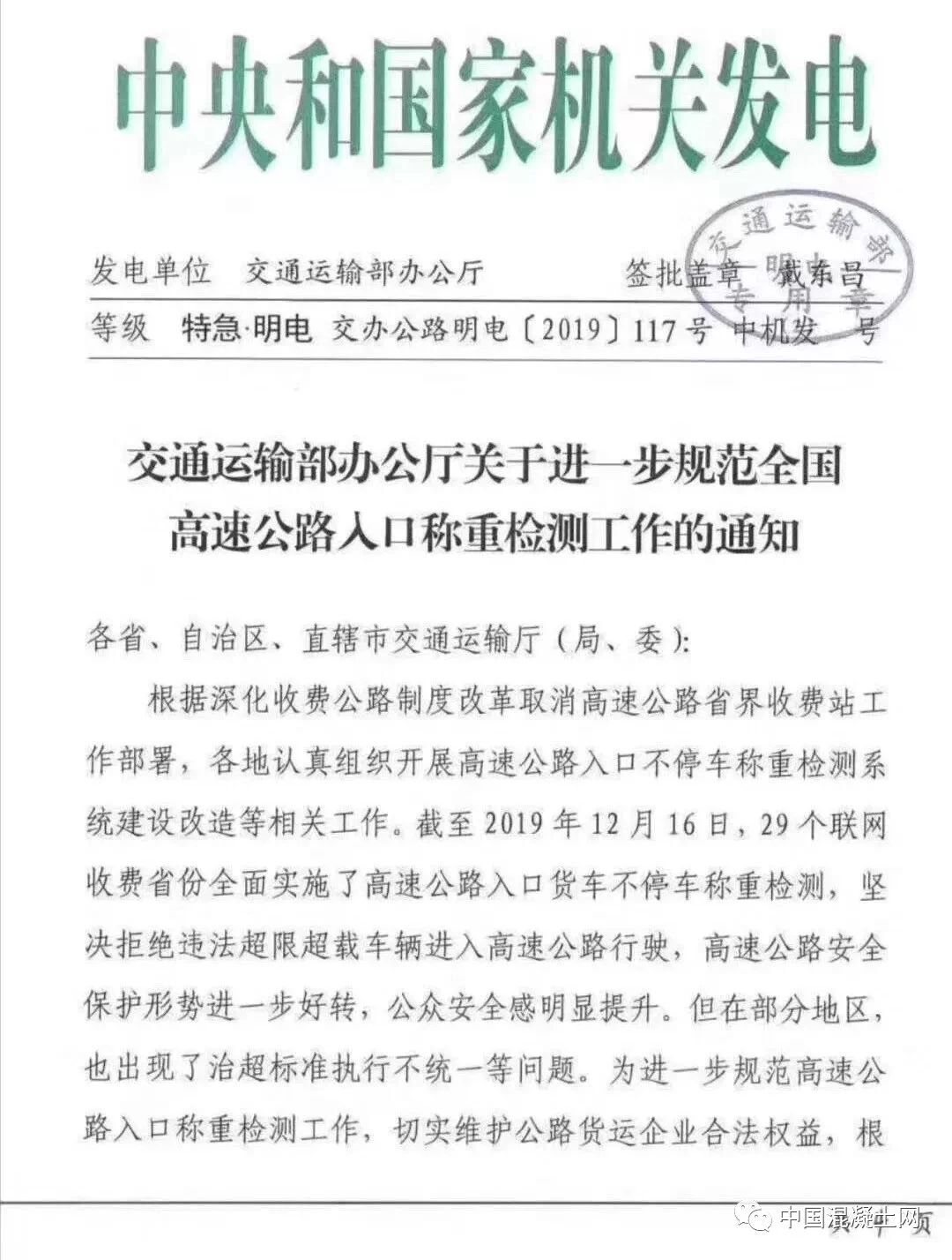 12月17日,交通運輸部辦公廳發(fā)布特急文件《關(guān)于進(jìn)一步規(guī)范全國調(diào)整公路入口稱重檢測工作的通知》(交辦公路明電【2019】117號)(以下簡稱“《通知》”)。《通知》直指全國部分地區(qū)治超標(biāo)準(zhǔn)不統(tǒng)一的問題。為進(jìn)一步規(guī)范高速公路入口稱重檢測工作,切實維護(hù)公路貨運企業(yè)合法權(quán)益,根據(jù)相關(guān)法律法規(guī)和規(guī)定,有關(guān)通知如下: