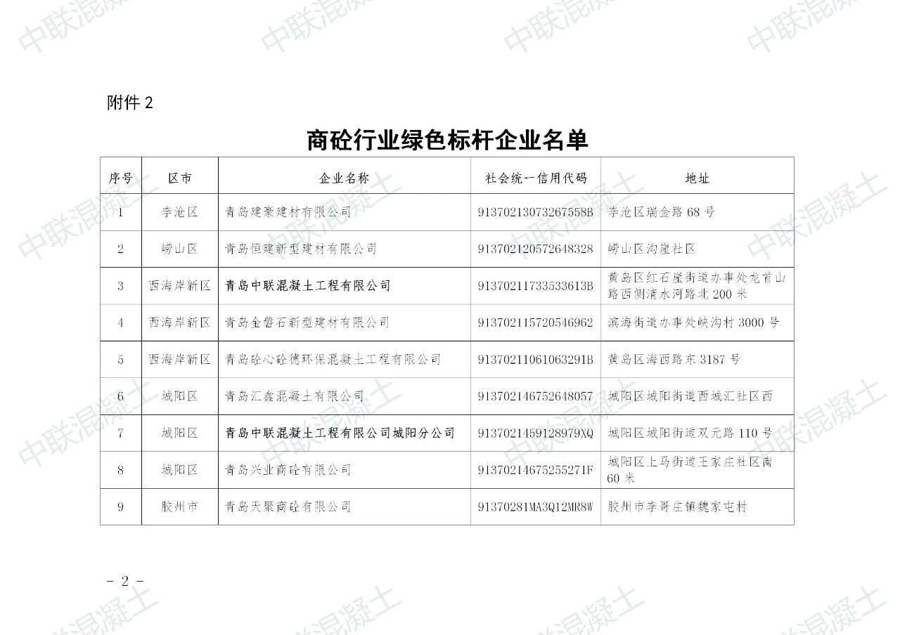 2020年1月3日,青島市重污染天氣專項(xiàng)應(yīng)急指揮部辦公室發(fā)布商砼行業(yè)綠色標(biāo)桿企業(yè)名單,全市170余家混凝土企業(yè)僅有15家通過(guò)評(píng)定,青島中聯(lián)混凝土和城陽(yáng)分公司獨(dú)占2席。