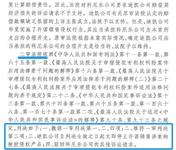 高院認(rèn)為,迪凱公司“從事了被訴侵權(quán)產(chǎn)品的制造、銷(xiāo)售和許諾銷(xiāo)售行為”。