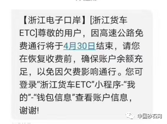 近日,很多浙江ETC用戶收到同樣一條短信,短信的內(nèi)容大致是:因高速公路免費(fèi)通行將于4月30日結(jié)束,請(qǐng)大家保持賬戶余額充足。