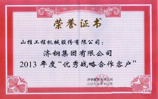 摘要:近日,山推股份公司榮獲濟鋼集團(tuán)有限公司2013年度“優(yōu)秀戰(zhàn)略合作客戶”榮譽證書。