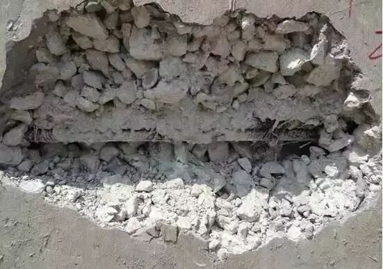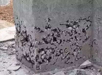 ②較大蜂窩,鑿去薄弱松散顆粒,洗凈后支模,用高一強(qiáng)度等級(jí)的細(xì)石混凝土仔細(xì)填塞搗實(shí);