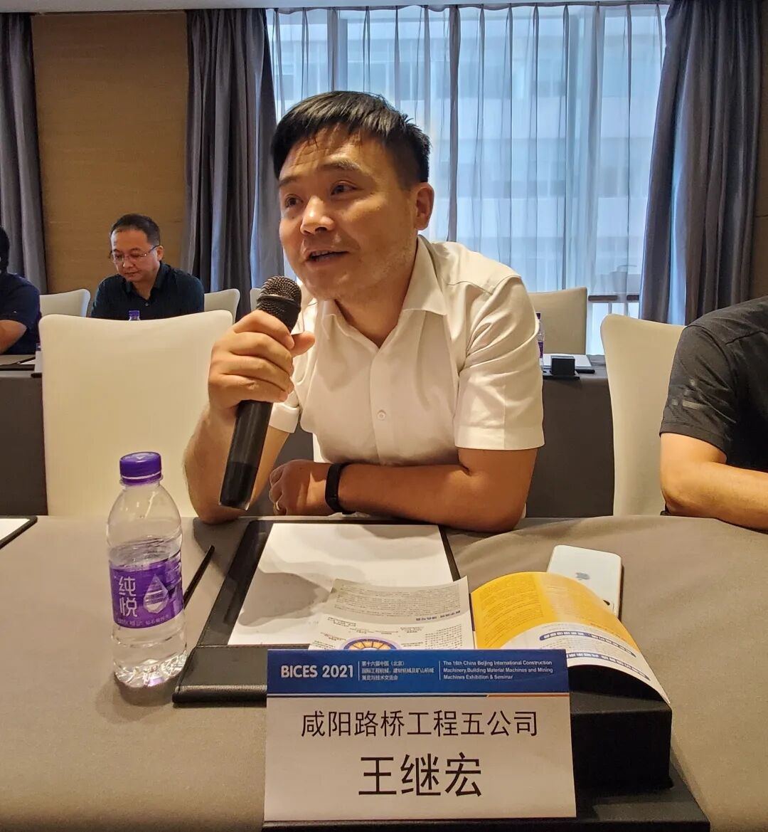 陜西省咸陽(yáng)路橋工程公司五公司總經(jīng)理王繼宏在座談交流中發(fā)言