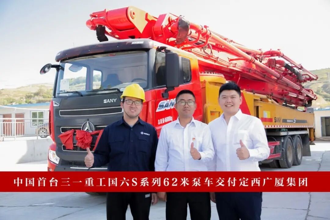 2021年8月,定西廣廈集團(tuán)采購國內(nèi)首臺(tái)三一國六S系列62米泵車。
