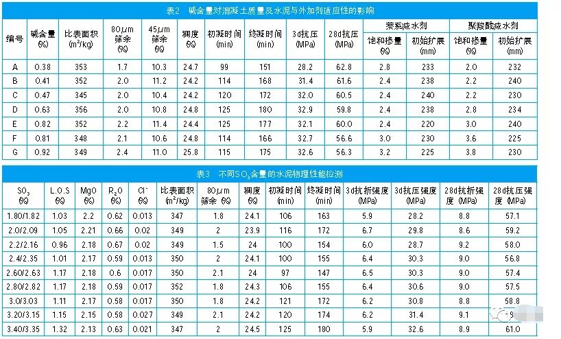 所以綜合考慮水泥強(qiáng)度及水泥與減水劑的適應(yīng)性,堿含量不宜超過(guò)0.8%,對(duì)聚羧酸減水劑而言,堿含量可盡量再低一些,盡量不超0.7%。