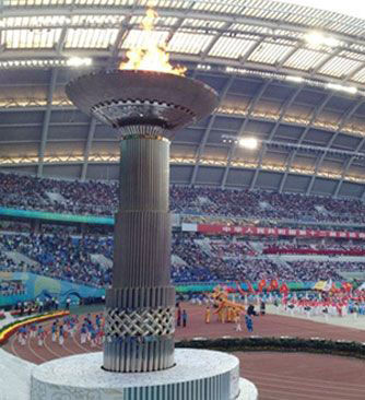 主火炬由沈陽北方交通重工集團負責(zé)創(chuàng)意、設(shè)計、制作、安裝及點火的工作。據(jù)悉,本次主火炬的制作工作時間緊急,任務(wù)繁重。在僅50天的時間里,北方交通主火炬制作團隊克服了重要技術(shù)及工藝難關(guān),僅用26天時間就成功升起。同時,本次主火炬的制作,創(chuàng)下了歷屆當(dāng)中時間最短的紀錄,更是首次在室內(nèi)場館中進行搭建吊裝,并且克服了多節(jié)升降結(jié)構(gòu)的舉升難題。作為項目總負責(zé)人,沈陽北方交通重工集團董事長、總裁曲凱先生又立下了汗馬功勞,臨危受命之后為此特別成立了工作指揮部,全程親自指揮調(diào)度主火炬的創(chuàng)意、制作、安裝和調(diào)試工作,不分白天黑夜奔波于工廠和奧體中心之間,并及時向有關(guān)領(lǐng)導(dǎo)匯報工作。為保證完成時間,他制訂了嚴格的計劃表,要求各部門積極配合,同時調(diào)動所有可以調(diào)動的資源,克服一切困難全力奮戰(zhàn),保證晝夜連續(xù)施工,主火炬牽涉部件近萬個,涉及電器、傳感、液壓、機械控制等多個領(lǐng)域,在北方交通近500人制作團隊的齊心協(xié)力下,艱苦奮戰(zhàn)了40多個晝夜,主火炬終于如期完成,以最完美的姿態(tài)呈現(xiàn)在世人面前。