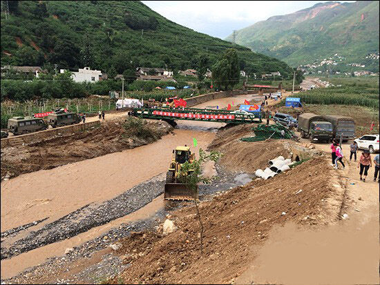 柳工機(jī)械在云南魯?shù)橹貫?zāi)區(qū)開挖生命通道