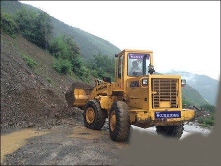 8月8日,柳工抗震救災(zāi)隊了解到巧家縣需要大型機械設(shè)備進行道路的搶險救災(zāi)的信息,就立即調(diào)撥1臺CLG855裝載機至巧家縣震區(qū)邊緣,以待隨時調(diào)用。8月11日,巧家縣交通局提出需要設(shè)備進行3條道路的施工搶險,柳工即刻與交通局溝通并現(xiàn)場勘察,確定了施工方案。由于鄉(xiāng)間道路狹窄,僅允許一輛30E裝載機通行搶險,柳工提供了3臺30型裝載機和1臺15噸級挖掘機,分別在3條道路上進行施工。