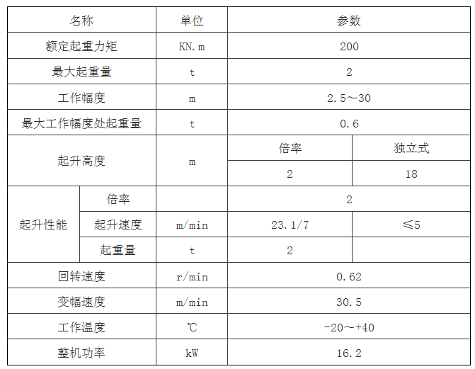 塔機使用狀況的基礎上,通過對各關鍵部件優(yōu)化設計后的一種新型號塔機,該塔機最大起重量2t,最大工作幅度30米,起升高度18米,可以滿足小別墅群及小型建筑施工的需求。