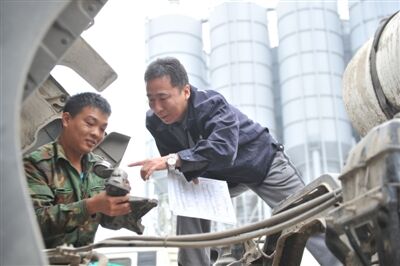 中午,“牛哥”正在吃飯,就接到王四營攪拌站要搶修的電話,他給同事安排好工作,拿起維修工具和配件又匆匆開車出發(fā)了……