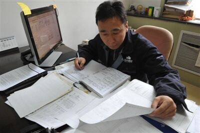 近日,記者來到位于西四環(huán)的混凝土攪拌站,走進維修車間,石新雨和他的徒弟正在車床前忙碌著。見到記者進來,石新雨的徒弟說,“是采訪‘牛哥’來的吧!他可是我們這兒的大能人?!笔掠臧咽掷锏幕罡赏辏钢饷鎭硗乃喙嘬嚭顽P車對記者說,“這些車輛和攪拌站設備都是我們維修保養(yǎng),為了保障設備運行生產,我們必須掌握一些技術?!彼弥掷飫偧庸ず玫囊粋€零件說,“這是水泥罐車上的一個易損件,經過我們加工改造,可以節(jié)約50%成本?!弊哌M維修車間旁邊他的辦公室,隨處可見許多技術專業(yè)書籍,涉及到機械、液壓液力、電子控制、軟件應用等方面的內容。石新雨說,“這些書是我的‘專業(yè)技術老師’”。