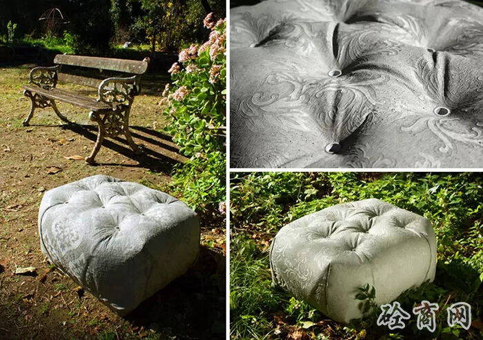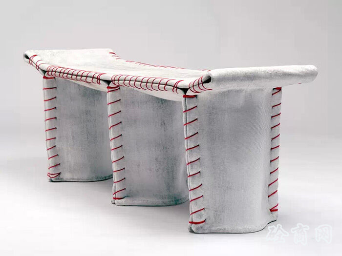 德國設計師florian schmid設計了一種“縫合混凝土”座椅,這個設計受到了混凝土帆布(CC)材料的影響?;炷敛剂鲜且环N浸漬了布料的柔軟水泥,它在水合過程中變硬,最終形成一個輕薄的,防水防火的混凝土表皮,將柔軟溫暖的布料質(zhì)感和堅硬冰冷的水泥融為一體。