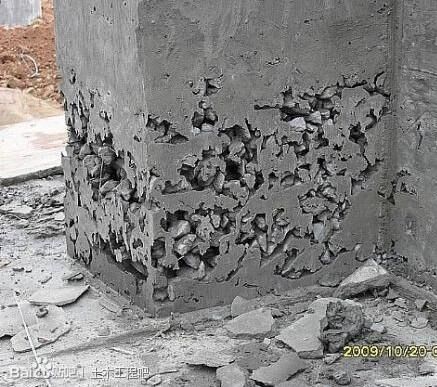 (4)無小振動棒插搗或不振搗或振搗不好。