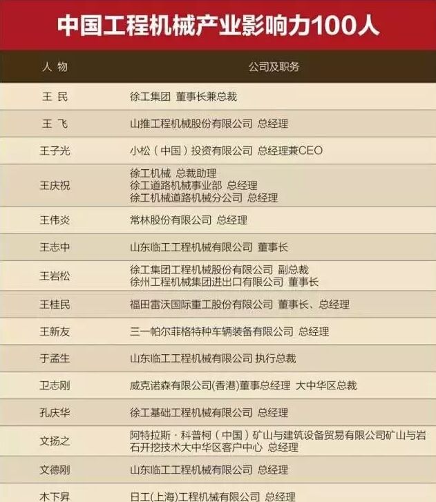 他們就是“中國工程機(jī)械產(chǎn)業(yè)影響力100人”。