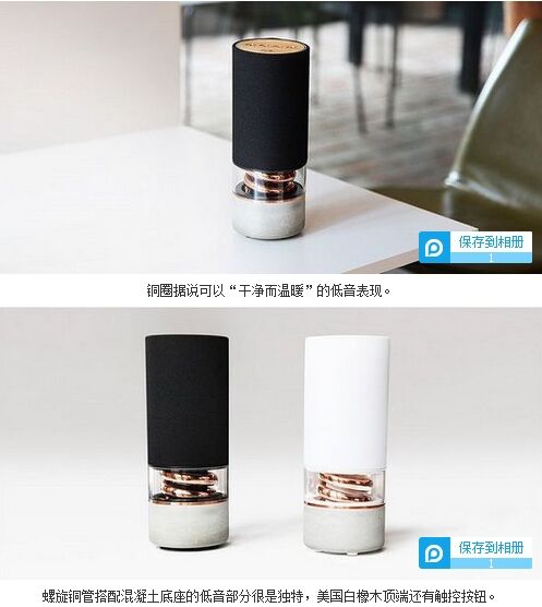 今天我們要介紹的是一款造型設(shè)計(jì)和材質(zhì)都非常獨(dú)特的藍(lán)牙音箱,它就是結(jié)合了混凝土基座和螺旋銅管低音部件的Pavilion。該揚(yáng)聲器目前正在Kickstarter上進(jìn)行眾籌,其設(shè)計(jì)者則是Hult Design。Pavilion支持藍(lán) Pavilion的直徑為3.95英寸(10 cm)、高10.22英寸(26cm)、重3.3磅(1.5 kg),感興趣的伙伴可以拿出$229美元去買一個(gè)白色或黑色版本(比零售價(jià)要便宜$110美元)。