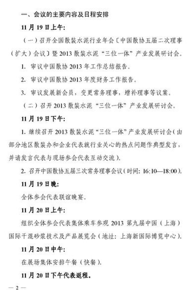 摘要:關(guān)于召開全國散裝水泥行業(yè)年會暨2013散裝水泥“三位一體”產(chǎn)業(yè)發(fā)展研討會的通知