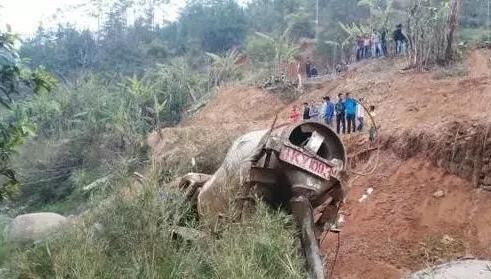 水泥罐車為閃避學(xué)生翻下10米山腳