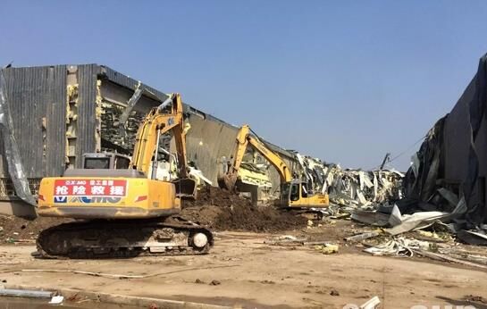 23日下午,由6名人員、4臺(tái)起重機(jī)、1臺(tái)挖掘機(jī)和兩輛服務(wù)車組成的救援小分隊(duì)趕到鹽城阜寧縣災(zāi)區(qū),緊急與當(dāng)?shù)鼐仍渚?、政府取得?lián)系,聽從統(tǒng)一指揮,全力投入現(xiàn)場搶險(xiǎn)。