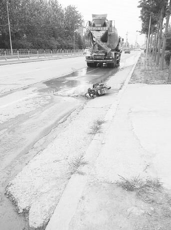 “這個(gè)女的騎著電動(dòng)車,看起來(lái)30歲左右,開攪拌車的司機(jī)是個(gè)男的,兩人都是由南向北同向行駛?!备浇患疑痰昀习甯嬖V記者,當(dāng)時(shí)兩人前面還有一輛灑水車在工作,電動(dòng)車和攪拌車都避開了這輛灑水車?yán)^續(xù)行駛。