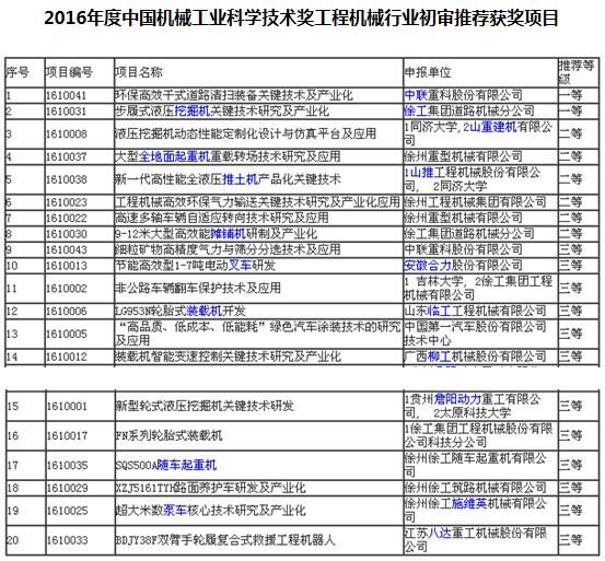 2016年8月2日,根據(jù)中國(guó)機(jī)械工業(yè)科學(xué)技術(shù)獎(jiǎng)勵(lì)工作辦公室的統(tǒng)一安排,中國(guó)機(jī)械工業(yè)科學(xué)技術(shù)獎(jiǎng)工程機(jī)械專(zhuān)業(yè)組在北京舉行了一年一度的工程機(jī)械行業(yè)“中國(guó)機(jī)械工業(yè)科學(xué)技術(shù)獎(jiǎng)”評(píng)審活動(dòng)。來(lái)自工程機(jī)械行業(yè)協(xié)會(huì)、企業(yè)和專(zhuān)業(yè)院校的14位行業(yè)專(zhuān)家集中到中國(guó)工程機(jī)械工業(yè)協(xié)會(huì)通過(guò)網(wǎng)絡(luò)會(huì)評(píng)方式參加了項(xiàng)目的初審工作。