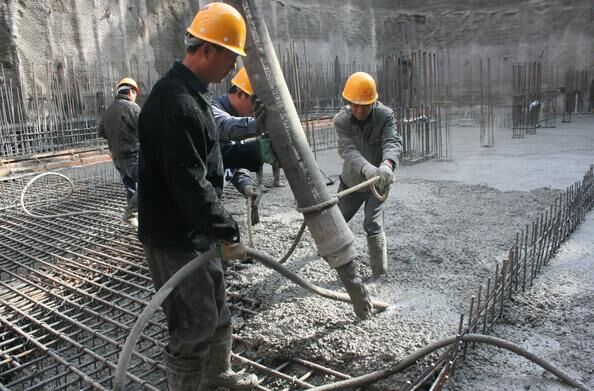 5、使用插入式振動器應快插慢拔,插點要均勻排列,逐點移動,按順序進行,不得遺漏,做到均勻振實。移動問距不大于振動棒作用半徑的1.5倍(一般為300~400mm)。振搗上一層時應插入下層混凝土面50mm,以消除兩層間的接縫。平板振動器的移動間距應能保證振動器的平板覆蓋已振實部分邊緣。