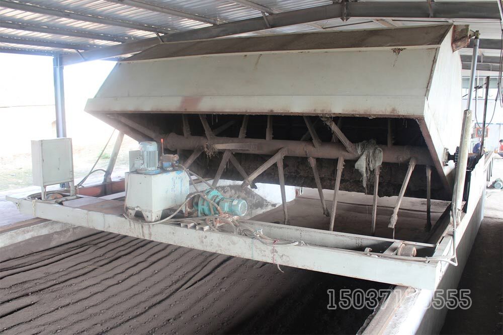 1.槽式翻拋機翻堆跨度可以達到4-12米,發(fā)酵周期15天左右。發(fā)酵槽長度視情況而定??梢悦刻爝M料口投料,另一頭出料。每天投料,每天出料加工。當(dāng)翻拋機翻拋完成需換翻拋段時,可升起攪龍將設(shè)備快速運行至翻拋段。