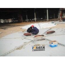 3、用吊車把水泥倉立起平穩(wěn)地移動到基礎(chǔ)上,檢測倉體的垂直度、誤差越小越好,然后與基礎(chǔ)板相連,用焊接機焊接牢固。并用加強筋板把四條腿加固好。注意事項:在立罐之前,一定要把螺絲上緊,焊接要焊接牢固,倉體垂直度上下誤差不大于1公分。在吊裝期間注意高空電線注意人員安全。