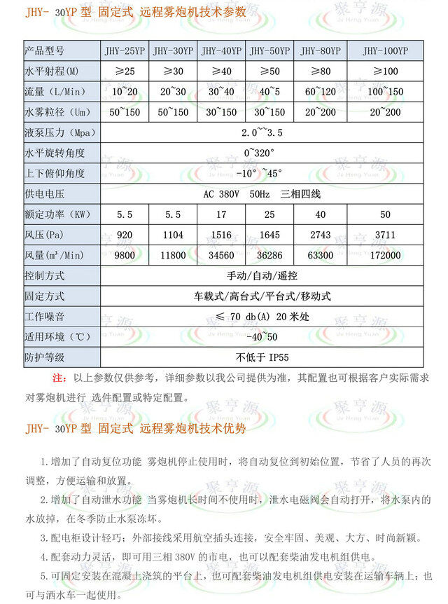 聚亨源JHY-□□YP系列遠(yuǎn)程霧炮機