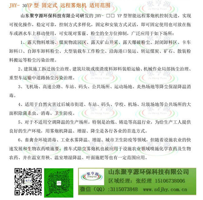 歸屬行業(yè):聚亨源JHY-□□YP系列遠(yuǎn)程霧炮機