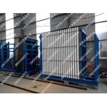 立式內(nèi)墻輕質(zhì)墻板生產(chǎn)線是我公司參照國內(nèi)外等先進(jìn)技術(shù)和經(jīng)驗,經(jīng)反復(fù)試驗研制成功的新產(chǎn)品。是外墻外保溫板實現(xiàn)工廠化生產(chǎn)的重大發(fā)明,已申請多項國家專利。本生產(chǎn)線有全自動攪拌系統(tǒng)、自動制板機(jī)、自動切割鋸、群鉆三部分組成。