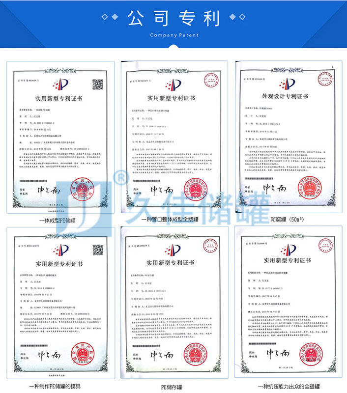 2、東莞久佳出品的塑料儲罐的材質(zhì)為滾塑專用料——線性低密度聚乙烯(LLDPE)或線性中密度聚乙烯(LMDPE)。它可以盛裝常溫下的無機酸、堿、鹽大部份物質(zhì)及許多有機物;